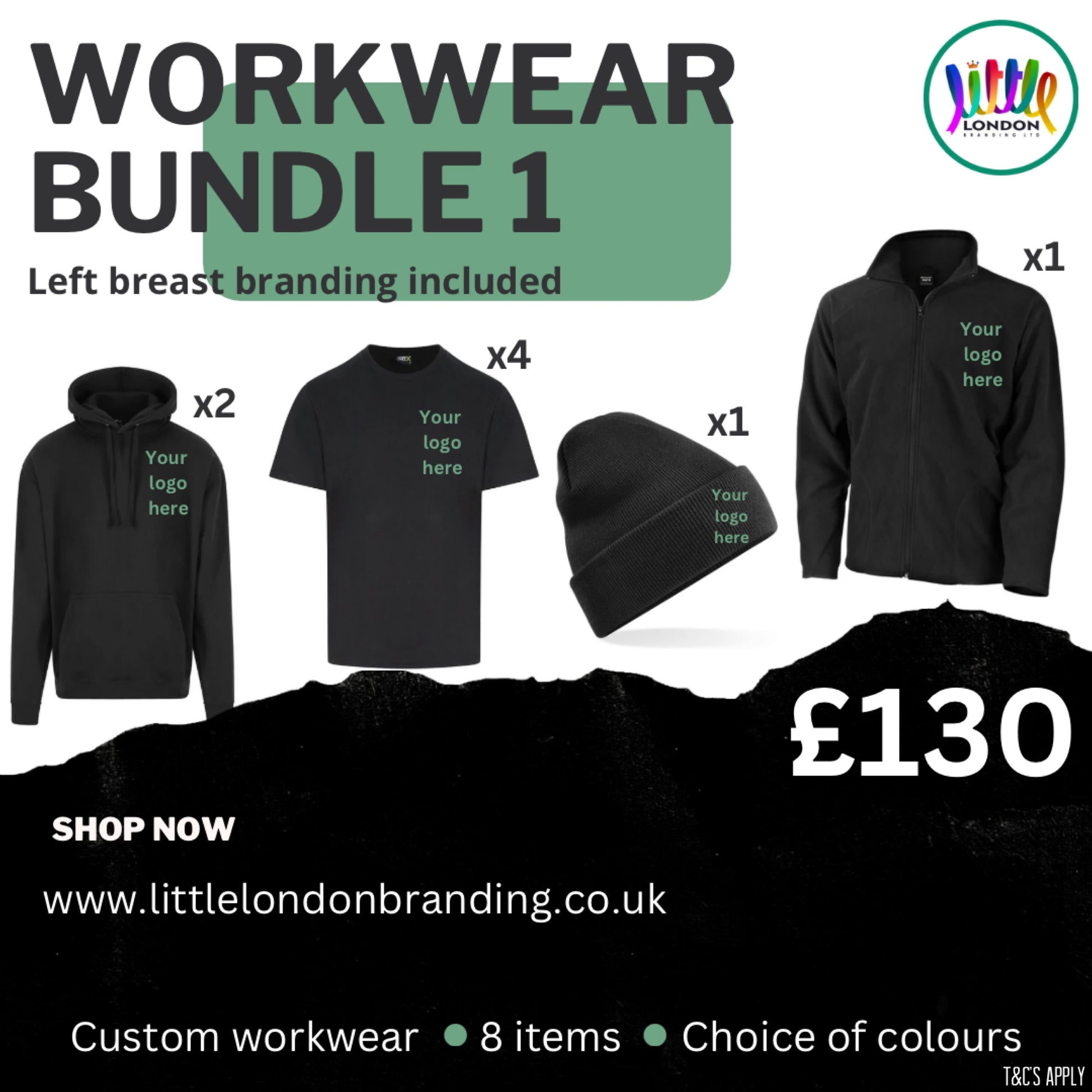 For this bundle you will receive all of the items listed above, in a choice of 3 colours (Navy, Black or Charcoal). Front logo branding (left breast) on each piece is included in the bundle price.