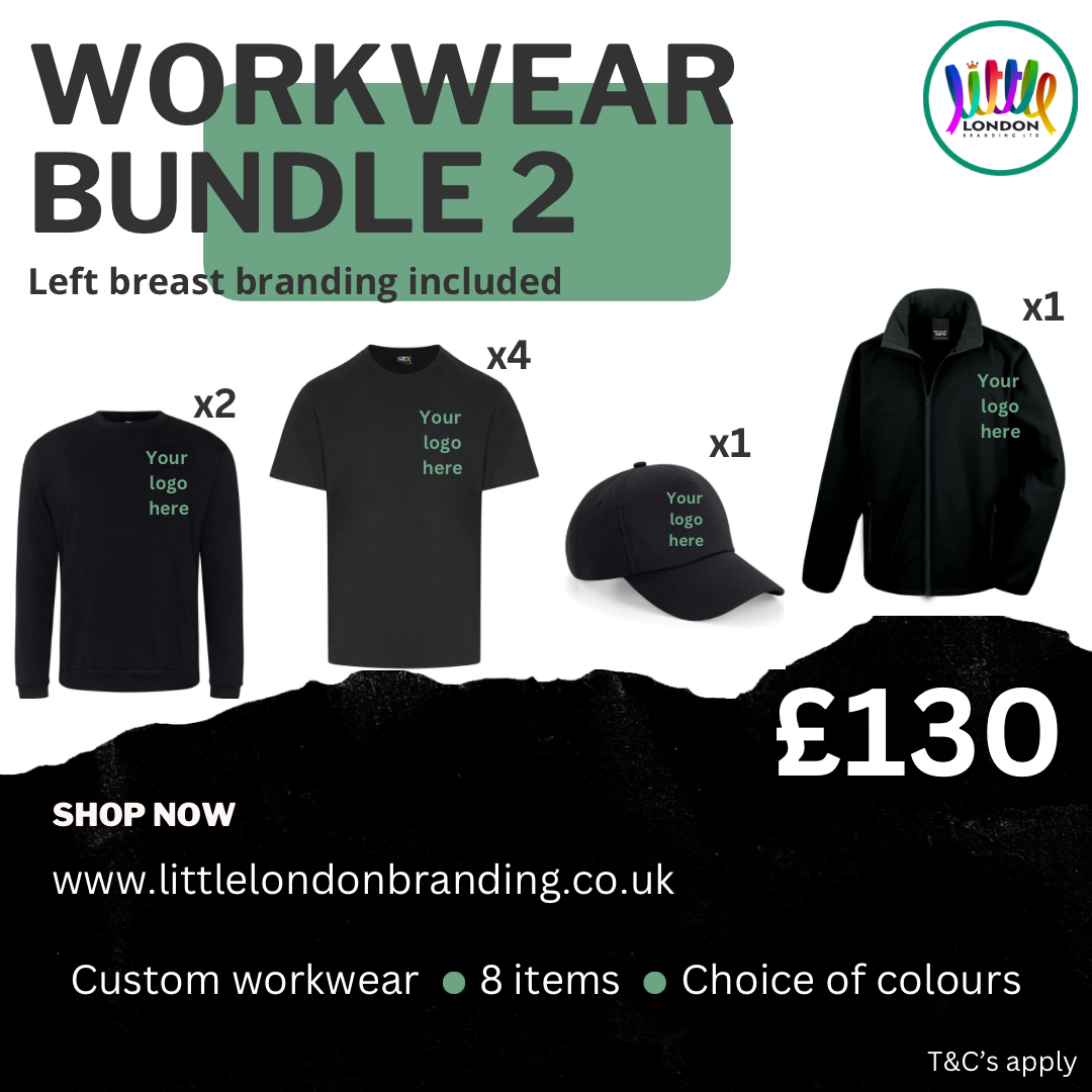 For this bundle you will receive all of the items listed above, in a choice of 3 colours (Navy, Black or Charcoal). Front logo branding (left breast) on each piece is included in the bundle price.